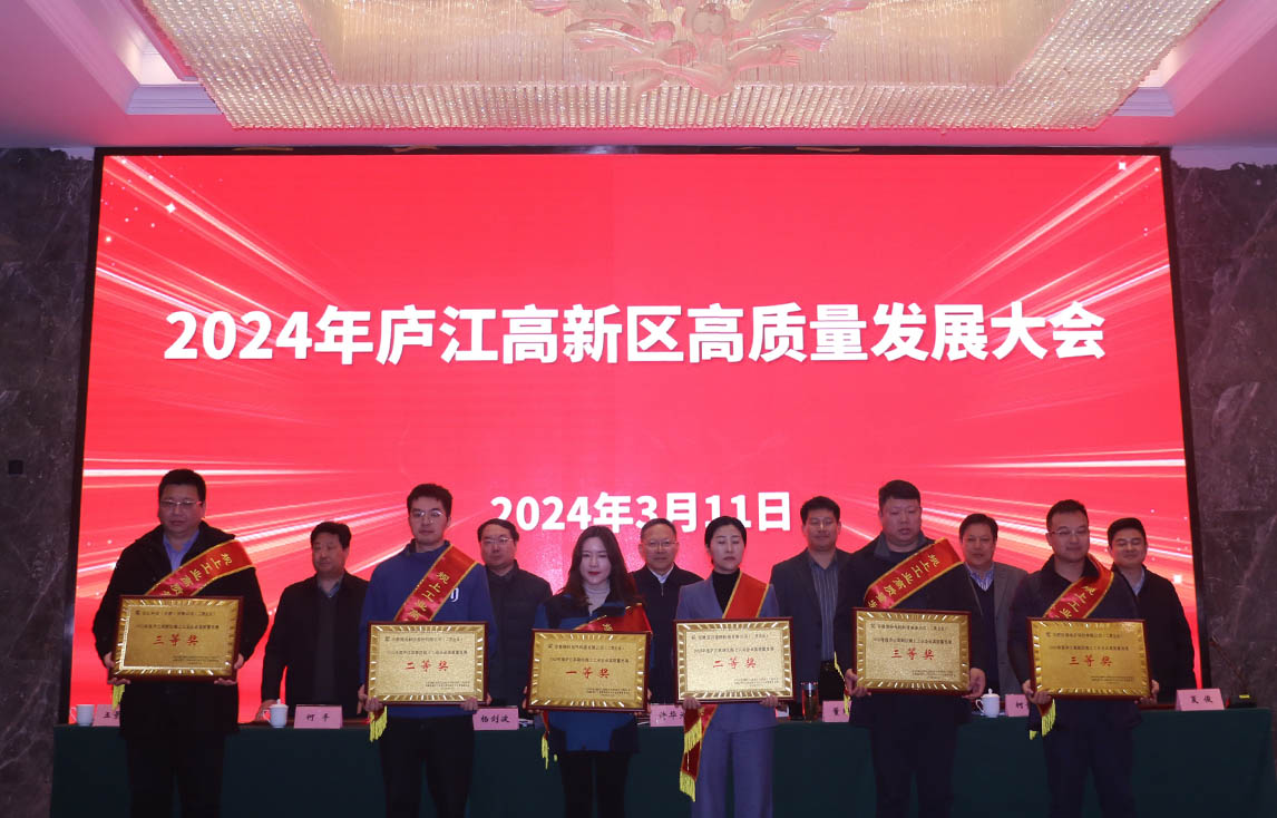 会上宣读了2023年度庐江高新区高质量发展相关奖项,HJC黄金城集团电气荣获《2023年度庐江高新区规上工业企业高质量发展一等奖》。县领导为各获奖企业颁奖并表示祝贺,同时勉励企业2024年再创佳绩。