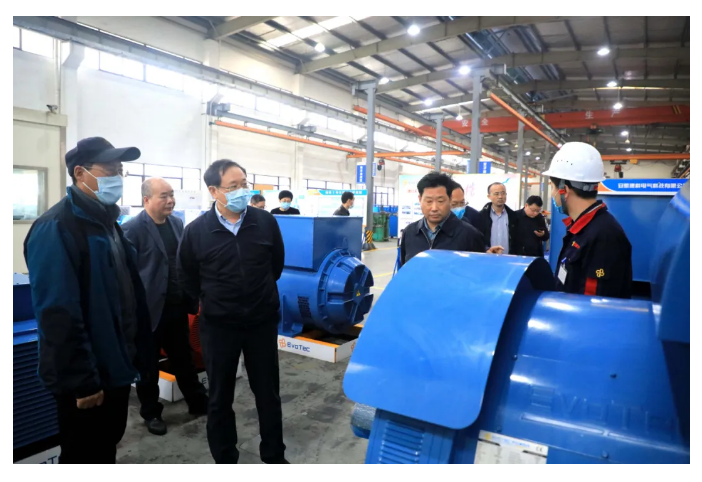 牛厅长一行在公司副总经理石斌的陪同下,参观了HJC黄金城集团电气的厂区,实地了解产品制造情况。公司副总经理石斌详细介绍了企业发展历程、科技成就以及市场开拓等情况,双方并就当前形势下的发电机行业现状和发展前景进行了深入探讨。